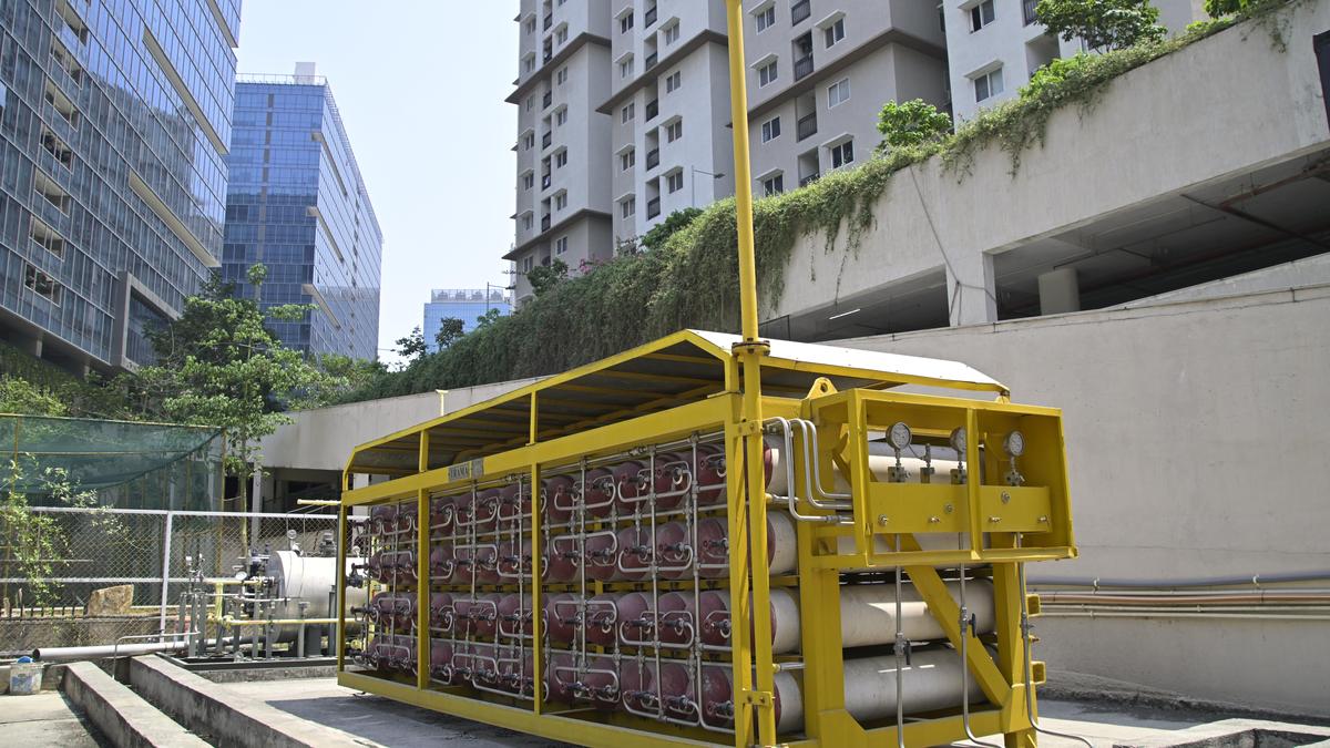 पाइप्ड प्राकृतिक गैस (पीएनजी) बुनियादी ढांचे के हिस्से के रूप में प्रेस्टीज हाई फील्ड्स में एक डीकंप्रेसर इकाई स्थापित की गई है, जो हैदराबाद में गेटेड समुदाय में सुरक्षित वितरण के लिए गैस के दबाव को नियंत्रित करती है। | फोटो साभार: सिद्धांत ठाकुर