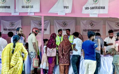 गुरुवार, 16 अप्रैल, 2026 को तिरुवनंतपुरम, केरल में चिलचिलाती गर्मी के बीच महिलाएं भोजन के पैकेट मिलने का इंतजार कर रही हैं।