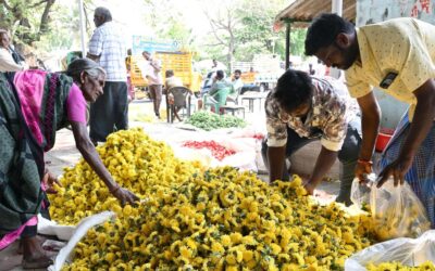31 मार्च, 2026 को तमिलनाडु के सलेम जिले के ओमलुर विधानसभा क्षेत्र में पूसारीपट्टी फूल बाजार में गेंदे के फूल बिक्री के लिए रखे गए | फोटो साभार: ई. लक्ष्मी नारायणन सलेम शहर से 15 किमी दूर स्थित ओमलूर निर्वाचन क्षेत्र में ओमलूर तालुक, कदयमपट्टी तालुक, करुप्पुर, कदयमपट्टी और ओमलूर नगर पंचायत का एक हिस्सा…